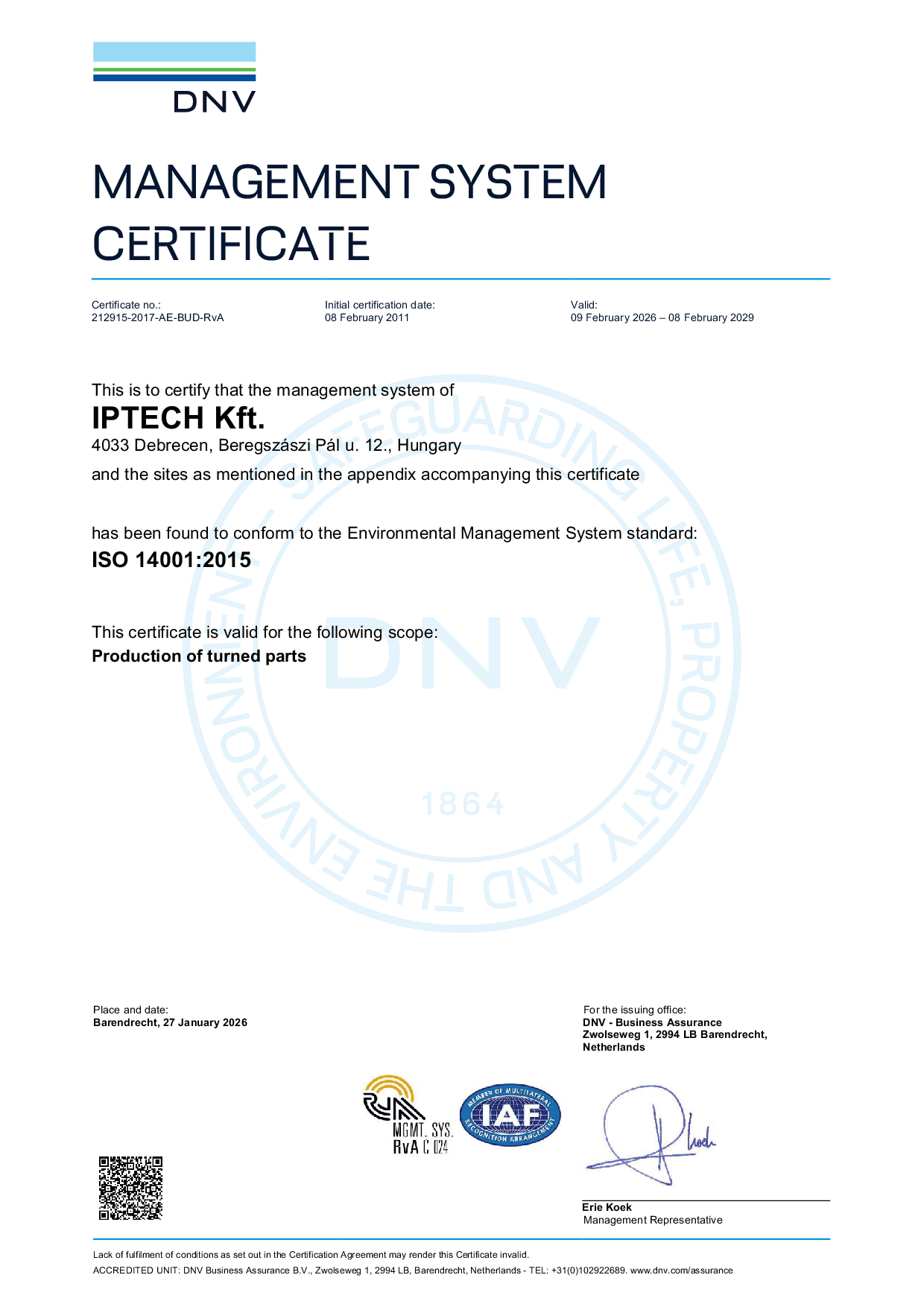 To this end, we operate an ISO 9001: 2015 management system in accordance with our own and our customers' expectations, which has been supplemented with an ISO 14001: 2015 environmental and an ISO 45001:2018 occupational health and safety management system in accordance with today's needs.